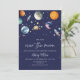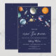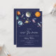Celebra la próxima llegada de tu pequeña estrella con esta invitación de baby shower Over the Moon. Con planetas de acuarela, cohetes y estrellas brillantes contra un cielo azul marino profundo, este diseño celestial es perfecto para los amantes del espacio y celebraciones soñadoras. Personaliza con el nombre de la futura mamá, fecha, hora, ubicación y detalles de RSVP.