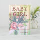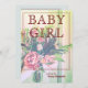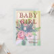 Una invitación para una ducha de bebé con flores en la parte delantera y la información del evento en la parte trasera.