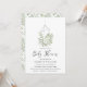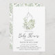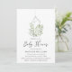 Invitaciones botánicas modernas y elegantes a la ducha de bebé con un terrario acuático pintado a mano con follaje verde y un moderno tipo de letra de caligrafía. El reverso de las invitaciones a la ducha de bebé neutra en función del género tiene un diseño de follaje similar. Personalice las invitaciones botánicas a la ducha con los detalles de la ducha para una invitación que impresionará a los huéspedes.
