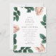 Invitación de Baby Shower para marco de flores rosadas y blancas. Feminina y bonito, esta invitación presenta un fondo floral antiguo con un elegante texto gris que la hace suave, pero muy moderna.