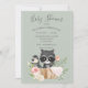 Pequeño y dulce mapache de acuarela en una cesta de mimbre y flores de bonito. Fondo verde de sabio suave. Qué lindo para esa ducha especial de bebé. Hay otros productos a tu disposición. 100% de satisfacción del cliente con "Zazzle"