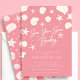 Celebra con esta invitación de baby shower rosa Nos Vemos Pronto con delicadas conchas marinas, estrellas de mar y un elegante diseño costero. Perfecta para un baby shower de playa, baby sprinkle costero, baby shower con tema de océano o baby shower náutico. La paleta suave de rosa y blanco le da a esta invitación de baby shower de conchas marinas un aspecto dulce, moderno y femenino para una celebración elegante junto al mar.