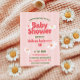 Celebra la llegada de un pequeño baño con esta dulce y retro invitación a bañarse. Con una tipografía rosa audaz, alegres margaritas blancas y un suave fondo rayado, este diseño lúdico le añade encanto y calidez a su evento. Personalizable completo con detalles como nombre, fecha, ubicación y RSVP. Ideal para una ducha de bebé con un ambiente divertido y nostálgico.