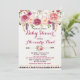 Invitación floral rústica de boho con rosas acuáticos, plumas y un catcher de ensueño, perfecta para duchas de bebé de temática bohemia.