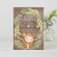 Adorable invitación rústica de safari para una ducha de bebé con el mono bebé más dulce para una ducha de bebé de niños con una franja de color verde de agua. Visita nuestra tienda para ver esta invitación a una ducha de chica o niños.