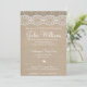 Invitación de Baby Shower de Arpillera Rústica y Encaje Antiguo. Una invitación de baby shower shabby chic muy elegante y de arpillera que presenta encaje victoriano elegante en la parte superior e inferior de esta invitación de baby shower y 2 diferentes fondos con textura de tela de arpillera. Hace un gran producto de papel dimensional para su baby shower con gran detalle no solo en el encaje, sino en la superposición de las piezas de arpillera y encaje juntas.