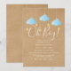 Perfecto para invitar a amigos y familiares a un baby shower especial. Con nubes azules lindas y estrellas doradas en cuerdas, sobre un fondo kraft rústico, esta invitación de baby shower es perfecta para todos los pequeños bebés que están en camino. Agregue los detalles de su celebración en blanco para crear la invitación perfecta. Diseñado por Thisisnotme©