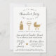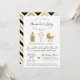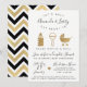 Esta invitación de Baby Shower Shake Rattle and Roll es una versión moderna de un tema clásico. Esta invitación de baby shower es perfecta para futuras madres, showers de parejas y fiestas de pañales. El diseño cuenta con elementos negros y de falso oro con un respaldo de chevron para un hermoso toque moderno.