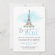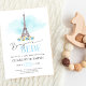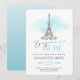 Traiga un toque de encanto parisino a su celebración con esta invitación de Baby Shower Bonjour Bébé. Con una Torre Eiffel pintada a mano, flores pastel de acuarela y tipografía de letra elegante, esta invitación captura la magia de París de una manera chic y moderna. Los tonos suaves azules y pasteles la hacen perfecta para una fiesta de bebé para niños o celebraciones neutrales en cuanto al género.