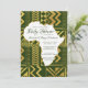 Esta Invitación de Baby Shower Tribal de África presenta elementos tribales de oro falso, centro en forma de África y colores de fondo cambiables. Puedes personalizar esta invitación inspirada en África para que se ajuste a cualquier esquema de color que combine bien con los elementos dorados.