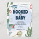 Esta invitación de baby shower con tema de pesca se vería muy bien en tu fiesta. Tiene obra de arte de acuarela y elementos naturales, como un pez, flotadores y una caña de pescar. Este diseño es perfecto para familias que aman el aire libre, la pesca o un tema de fiesta inspirado en la naturaleza.