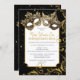 ¡Celebra la Nochevieja con estilo en un glamuroso baile de máscaras! Esta invitación presenta máscaras doradas impresionantes, espirales dorados hipnóticos y estrellas brillantes. ¡Prepárate para bailar y celebrar la llegada del año nuevo con estilo!