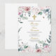 Invitación de bautismo con flores rosadas
