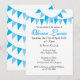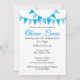 INVITACIÓN DE BAUTIZO AZUL DE BABY BUNTING. Esta bonita invitación de bautizo o primera comunión presenta bunting azul y blanco, y hermosa caligrafía con sombra azul. La parte posterior presenta filas de fondo de bunting azul y blanco. Diseñado por Pure Piglet© en www.zazzle.com/purepiglet*.