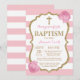 Invitación de Bautizo con Brillo Rosa y Dorado