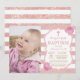 Invitación de Bautizo con Brillo Rosa y Dorado Rosa con foto personalizada. Bautizo de niña. Primera Comunión. Bautizo. Dedicación de niños. Rayas rosadas y blancas doradas. Flor floral rosa. Para una personalización adicional, haga clic en el botón "Personalízalo" y use nuestra herramienta de diseño para modificar esta plantilla.