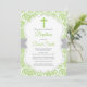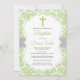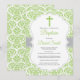 Invitación de Bautizo con Cruz de Damasco Verde