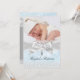 Invitación de Bautizo Azul. Hermoso corazón cruzado y lazo de seda plateada. Personaliza con tus propios detalles y foto. Por favor, tenga en cuenta que todas las imágenes son planas, no tienen encaje o lazo real.