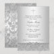 Invitación de Bautizo. Elegantes rosas plateadas y cruz de diamantes. Exclusivo Zazzle. Personaliza con tus propios detalles y foto. Tenga en cuenta que todas las imágenes planas no tienen encaje o joyas reales.
