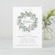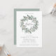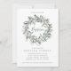 Un diseño de invitación de bautizo con una corona rústica con follaje verde frondoso y bayas del bosque.
