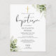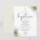 Esta elegante tarjeta postal de invitación de bautizo con hojas de botanica verde se puede personalizar con su información en tipografía chic con sus iniciales de monograma en el reverso. Diseñada por Thisisnotme©