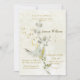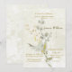 Celebre un momento sagrado con esta elegante tarjeta de bautizo que presenta una suave paloma blanca rodeada de elementos botánicos dorados y plateados sobre un fondo texturizado cremoso.