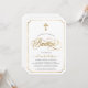Moderna y elegante Invitación de Bautizo con fondo blanco, cruz dorada elegante, tipografía de Bautismo en letra dorada de moda. Para editar esta plantilla, haga clic en personalizar más.
