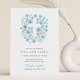 Invitación de Bautizo Floral Azul Escalonado para