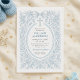 Invite a amigos y familiares a una celebración significativa con esta elegante invitación de bautizo azul. Con un marco floral, cruz y ilustración de lazo bellamente detallados, este diseño atemporal es perfecto para el bautizo, la presentación o la dedicación de un bebé. Clásico y totalmente personalizable, aporta un encanto vintage a su ocasión sagrada.