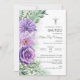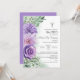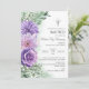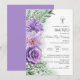 Celebre el Bautismo Católico religioso de su hijo con esta elegante Invitación de Bautismo con Flores Moradas y lindas Hojas Verdes. Disponible en español.