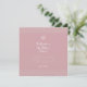 Una invitación de bautizo cuadrada clásica pero moderna en rosa sonrojada polvorienta que presenta sutiles franjas superiores e inferiores, una concha pintada a mano con una cruz, y una fuente de escritura suave para una apariencia elegante y significativa.