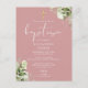 Invitación de Bautizo Rosa Polvo Floral Verde