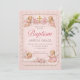 Invitación de Bautizo Vintage Rosa con Querubín y
