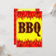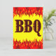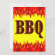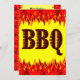 Una fiesta de cumpleaños personalizado o una invitación a la cocina de barbacoa con arte de llamas rojas y naranjas leyendo BBQ en la parte delantera y espacio para texto personalizado en letras de estilo occidental en la parte trasera. Haga clic en Personalizar para cambiar fuentes, tamaño de invitación, colores de fondo, agregar o quitar texto y más, incluso guardar el diseño para más adelante.