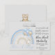 Este sencillo diseño presenta las palabras "Masha Allah Tabarak Allah" en caligrafía árabe, y un ilustracion de un arcoiris azul y plateado y un conejito con globos. Puede alterar el color de fondo, el tipo de letra y el mensaje.