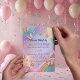 Bienvenidos a su bebé niña con esta adorable invitación temática de mariposas, llena de colores pastel suaves y mariposas revoloteando. Perfecta para fiestas de bebé, fiestas de bienvenida o anuncios de nacimiento, este diseño agrega un toque mágico y conmovedor a su celebración. Totalmente editable: personalice el nombre, fecha, hora y ubicación para que se ajuste a su evento especial. Delicado, lindo y muy dulce, ¡al igual que su pequeño!