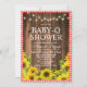 Invitación de luces de cuerda de ducha de bebé para parejas rústicas Q barbacoa girasol de madera
