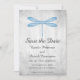 Elegante y simple invitación de boda para guardar la fecha con una libélula azul contra un fondo gris desgastado. Este diseño es una opción única para anunciar una boda moderna. Fácil de personalizar con los detalles de su boda. Haga clic en "Personalizar" para encontrar más opciones de personalización.