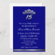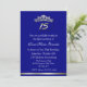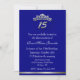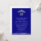 Agradable invitación de cumpleaños Quinceanera azul y plata. Una corona espumosa de plata bonito decora la parte superior de esta invitación azul. Texto gráfico del número 15 en tono plateado, sentado bajo la corona y una cinta de tono plateado acentúa la parte inferior, de las invitaciones. Personalice el texto, para su celebración de 15 años.