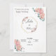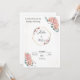 Una bonita y elegante invitación a la boda, con unas rosas rosas blandas y hojas de eucalipto verde. Un delicado marco geométrico dorado rodea el espacio en blanco para los detalles del evento. Perfecto para una moda, un boda moderno y romántico".