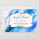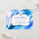 Una invitación de boda moderna con un marco decorativo elegante en el centro con una imagen de fondo genial de un diseño de acuarela cósmica. Azul, rosa y púrpura se mezclan y se entrelazan para crear un patrón divertido de espacio exterior marmoleado.