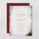 Tarjetas de Invitación de Boda Abstractas Etéreas con Acuarela en Rojo Vino y Dorado. Esta invitación de boda moderna es hermosa y está pintada a mano con colores ricos que son perfectos para el invierno. Se muestra en la paleta de colores de Boda de Vino: Rojo Vino Oscuro, Gris Castillo, Rosa Pálido Perla, Dorado Antiguo y Azul Teal Cascada. Con detalles de lámina con brillo metálico falso y una fuente de letra con cola hermosa y elegante, la colección de boda con acuarela etérea seguramente hará que su boda sea memorable y hermosa.