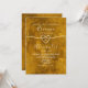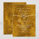 Invitación de boda elegante, boho, contemporánea, abstracta con acuarela dorada y monograma en la parte posterior, escritura de caligrafía de moda y corazón de cuerda dorada falsa.