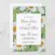 Un bonito marco de margarita blanca de acuarela que rodea un elegante texto es perfecto para tu boda de primavera y verano. El fondo verde resalta las hermosas flores silvestres. Simplemente encantador.