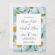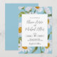 Un bonito marco de margarita blanca acuarela que rodea un elegante guión es perfecto para tu boda de primavera y verano. El fondo azul resalta las bonitas flores silvestres. Es simplemente encantador.
