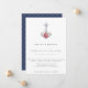 Hermosa ancla adornada con flores de acuarela y patrón de nudo náutico azul marino, invitación de boda con tema náutico.