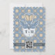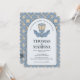Haz que la planificación de tu boda sea fluida con esta elegante invitación Art Nouveau que presenta un código QR funcional en la parte posterior para una fácil respuesta digital o acceso al sitio web. El diseño muestra un sofisticado motivo floral en azul polvoriento y crema con un borde clásico de volantes.
