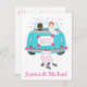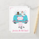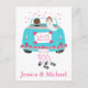 ¡El amor está en el aire! Anuncien con orgullo a sus amigos y familiares que usted y su novia acaban de casarse. Esta adorable postal de invitación de boda Just Married incluye a un novio y una novia conduciendo en su auto azul turquesa boda con latas de lata y flores rodeadas de corazones rosas. La tarjeta puede ser personalizada con los nombres de la novia y el novio, una familia o un nombre de negocio. Las postales de invitación boda son una alternativa económica a las tarjetas de felicitación cuando se desea anunciar el matrimonio. Otros productos y regalos que puedes disfrutar... Etiquetas: recién casada, boda, amor, invitación boda turquesa, boda verde, boda azul turquesa, boda azul, novia y novio,