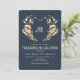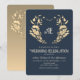Esta elegante invitación de boda en azul marino y dorado presenta un diseño floral barroco lujoso con una guirnalda floral en forma de corazón y un monograma clásico en la parte superior. Perfecta para parejas que buscan un toque sofisticado y romántico para su día especial. La combinación de azul marino profundo y dorado radiante crea una estética atemporal y regia, lo que la hace ideal para celebraciones de boda formales y elegantes.