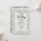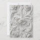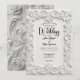 Invite a sus invitados a una celebración de elegancia atemporal con un diseño que susurra grandeza real y romance histórico. Perfectamente adecuado para un evento formal de etiqueta, esta papelería captura la belleza sofisticada de la escultura clásica en un formato moderno. La paleta monocromática asegura que complementa cualquier esquema de color de boda mientras permanece distintivamente lujosa. Este diseño presenta una impresión digital de alta resolución que simula la apariencia táctil de un relieve en 3D o tallado en yeso. La obra de arte se caracteriza por hojas de acanto arremolinadas, rosas floreciendo y un marco barroco ornamentado representado en tonos de blanco, marfil y crema con sombras grises suaves para crear un efecto de profundidad trompe l'oeil convincente. La tipografía es una mezcla de caligrafía negra elegante para nombres y fuentes serif tradicionales para detalles, colocada sobre el fondo pseudo-escultórico. El reverso (o área de patrón) muestra una continuación del denso trabajo de volutas florales que presenta dos anillos de boda entrelazados en el centro, manteniendo la estética de piedra tallada simulada. Nota: El papel es liso y plano; la textura es solo un efecto visual impreso.